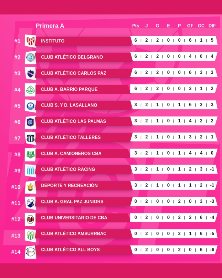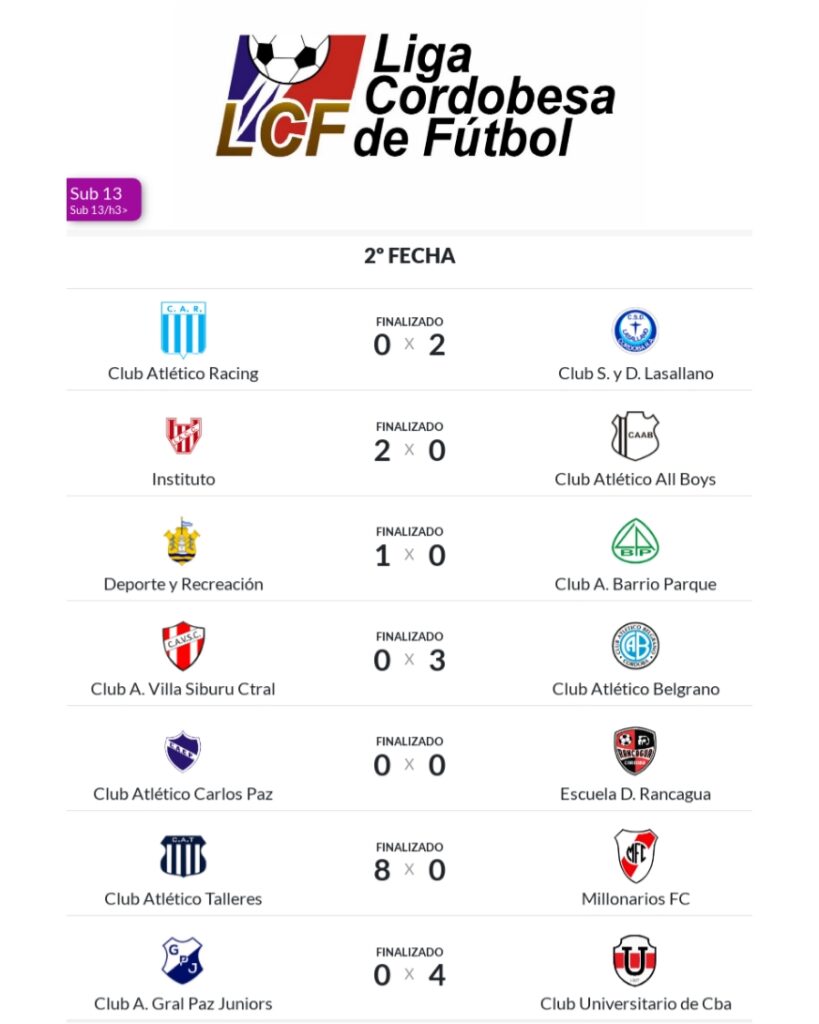 En la A, sumaron de a tres: Instituto, Belgrano, Atlético Carlos Paz, Talleres, Camioneros, Barrio Parque y Racing. En la B, goleada de Avellaneda, único líder. La info de Sub17, Sub15 y Sub13.