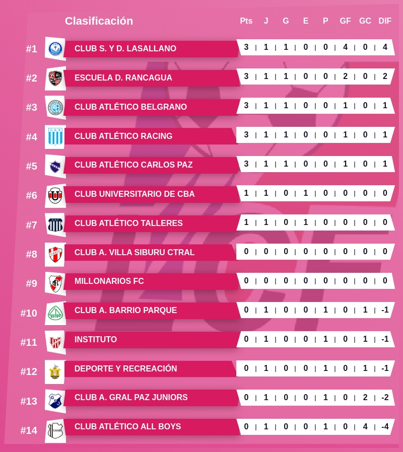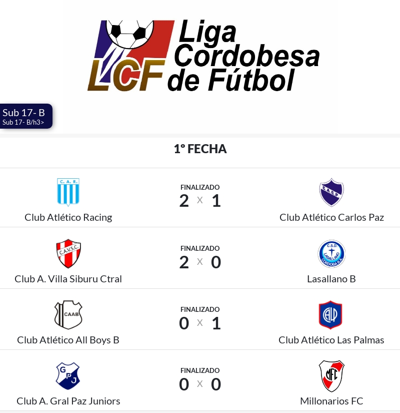 Arrancó la “A” con las victorias de Barrio Parque, Instituto, Belgrano, Lasallano, Las Palmas, Deporte y Recreción, y Atlético Carlos Paz. En la B, triunfos de Avellaneda y Siburu Central. Info sub17, sub15 y sub13.