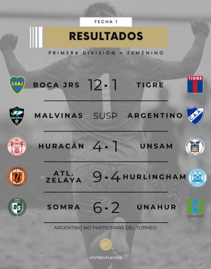 Boca fue aplastante: 12-1 a Tigre. Atlético Zelaya, Huracán y el debut de Somra, con victorias amplias. Argentino de Rosario finalmente se dio de baja.