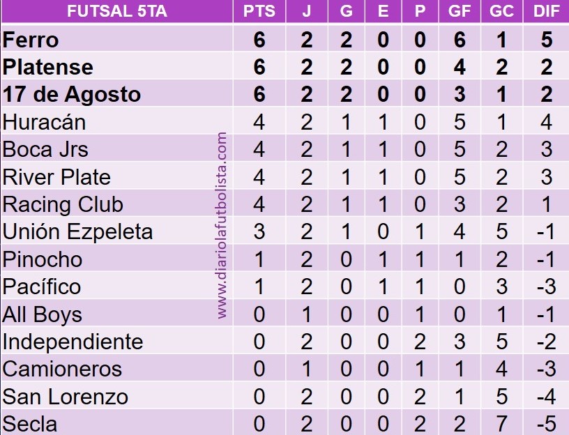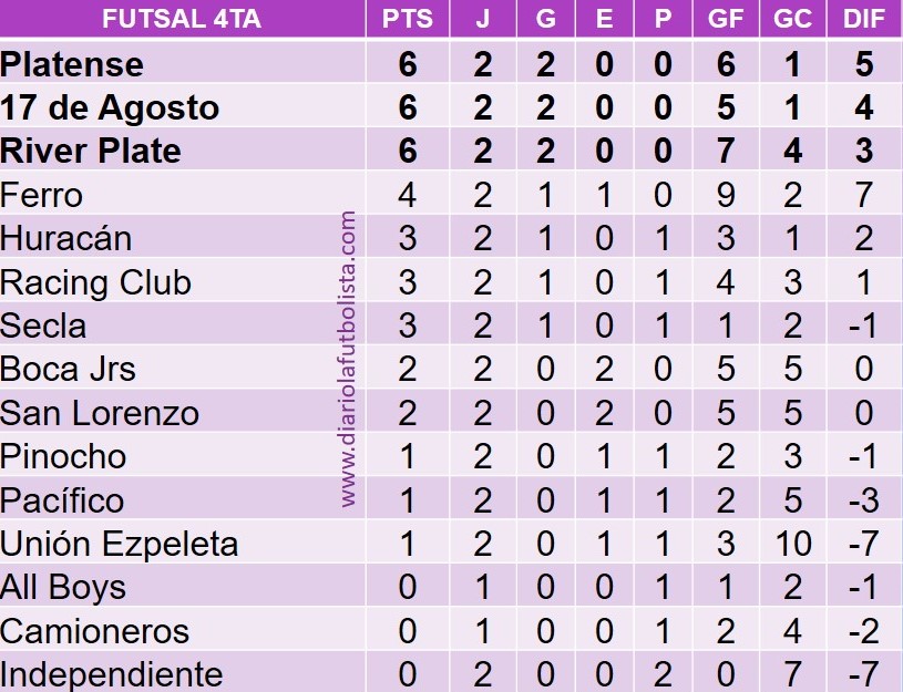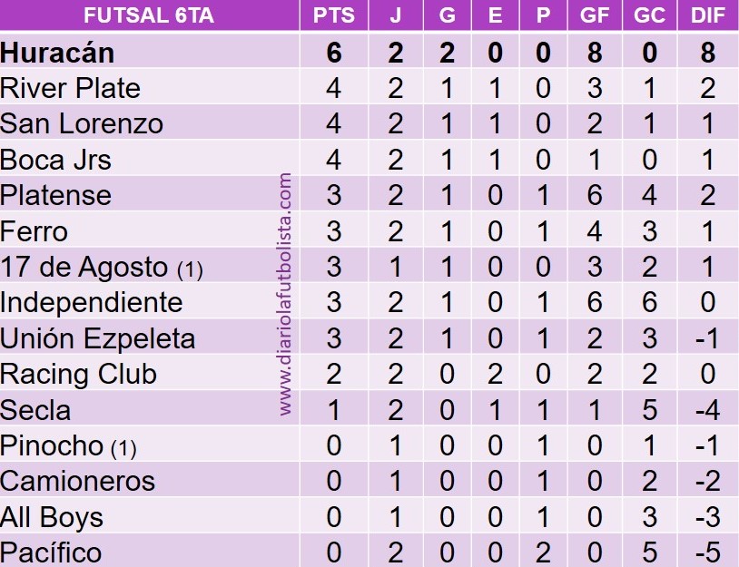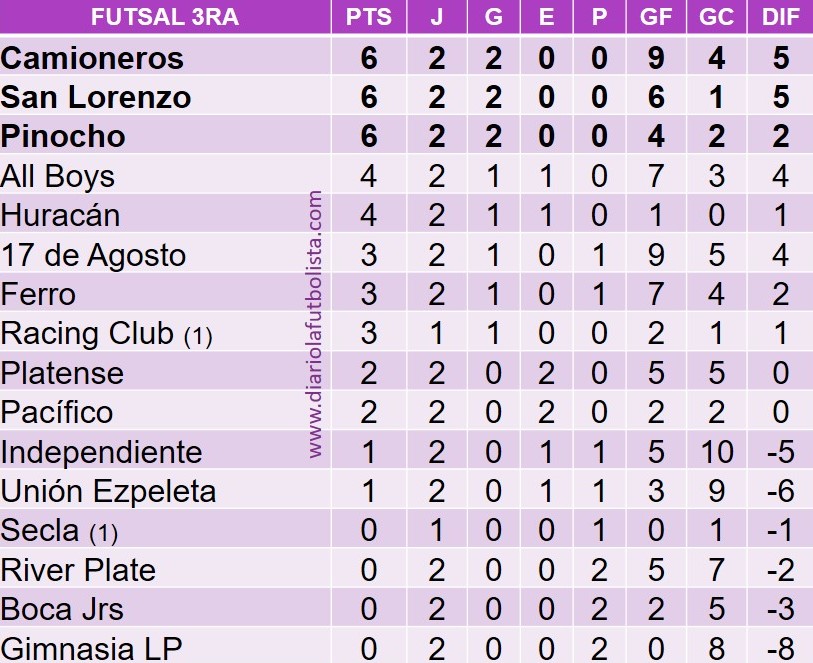 3ra: 8-3 / 4ta: 3-0 / 5ta: 2-1 / 6ta: 3-2