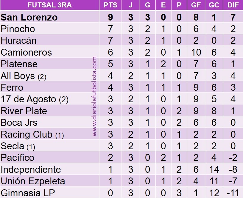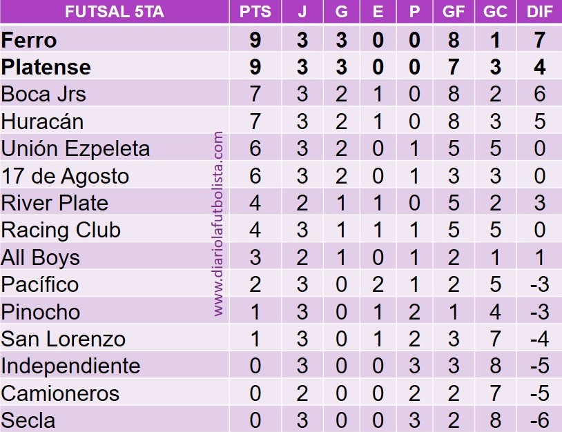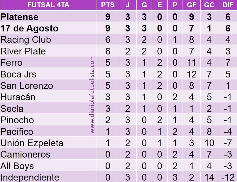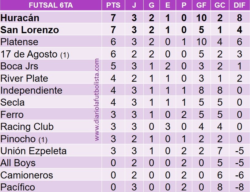 3ra: 2-0 / 4ta: 3-2 / 5ta: 2-2 / 6ta: 3-0