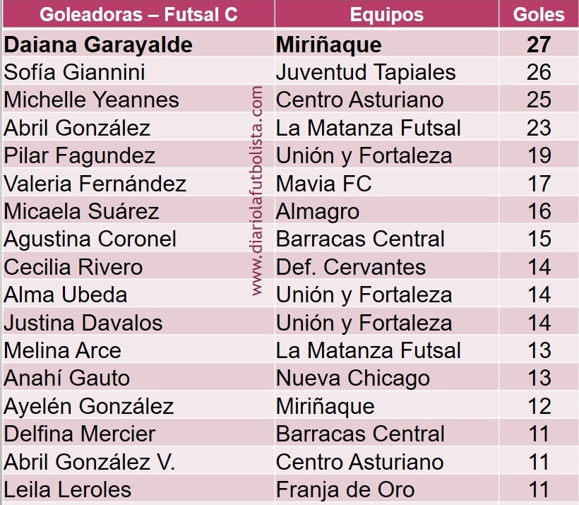 Centro Asturiano 2 vs Miriñaque 6. Goles: Violeta Maskin y Martina Baleani (CA) Ayelén González -2-, Mia González de Andreis -2-, Daiana Garayalde y Yanina Torres (M)