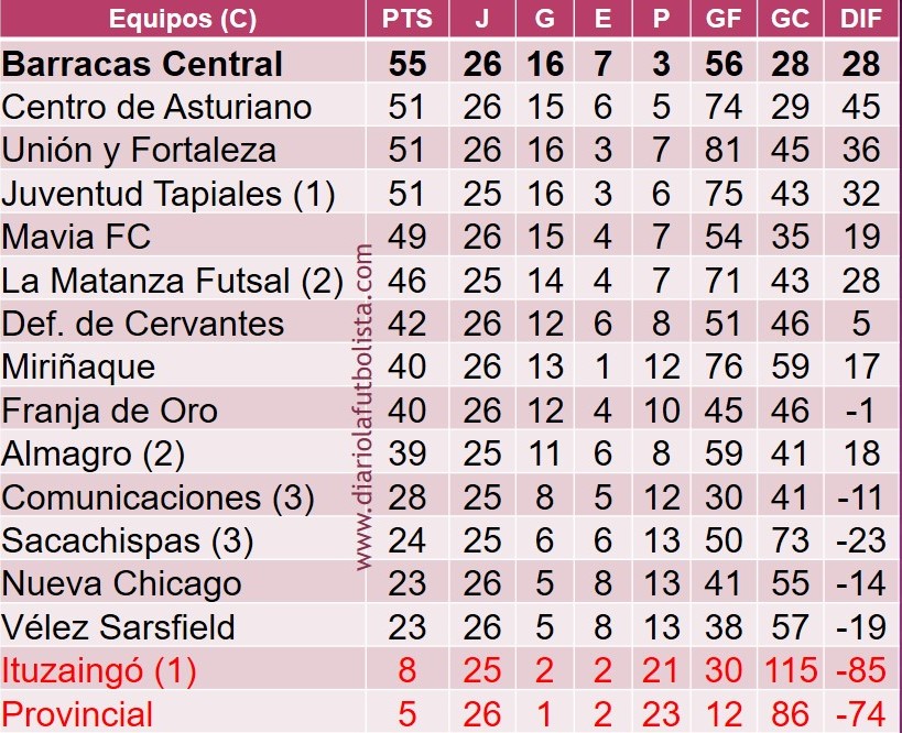Futsal C: Se mueve la tabla
