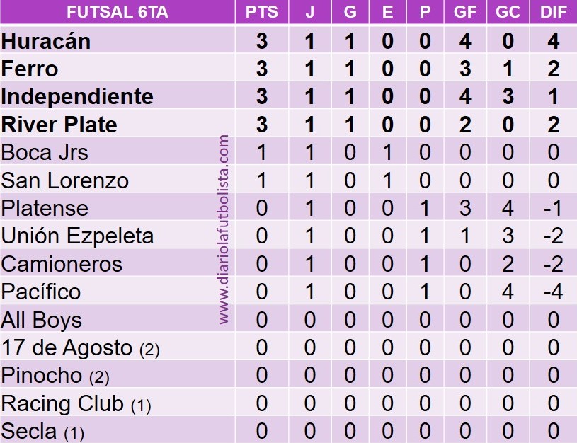 3ra: 4-5 / 4ta: 4-2 / 5ta: 4-1 / 6ta: 2-0