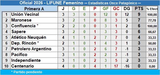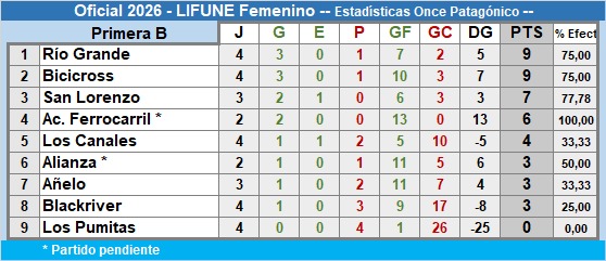 Por Elina Cafi (corresponsal) – estadísticas: Once Patagónico
