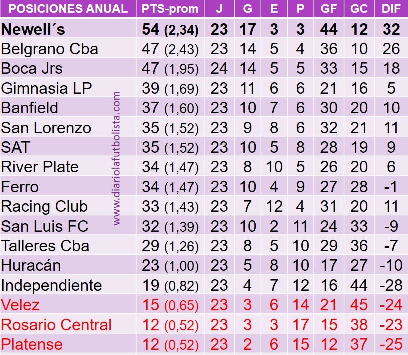 Platense jugará en la B por primera vez al igual que Central; Vélez el otro que baja. El interior goleó con Newell´s, Belgrano y San Luis FC. Ferro venció a Boca.
