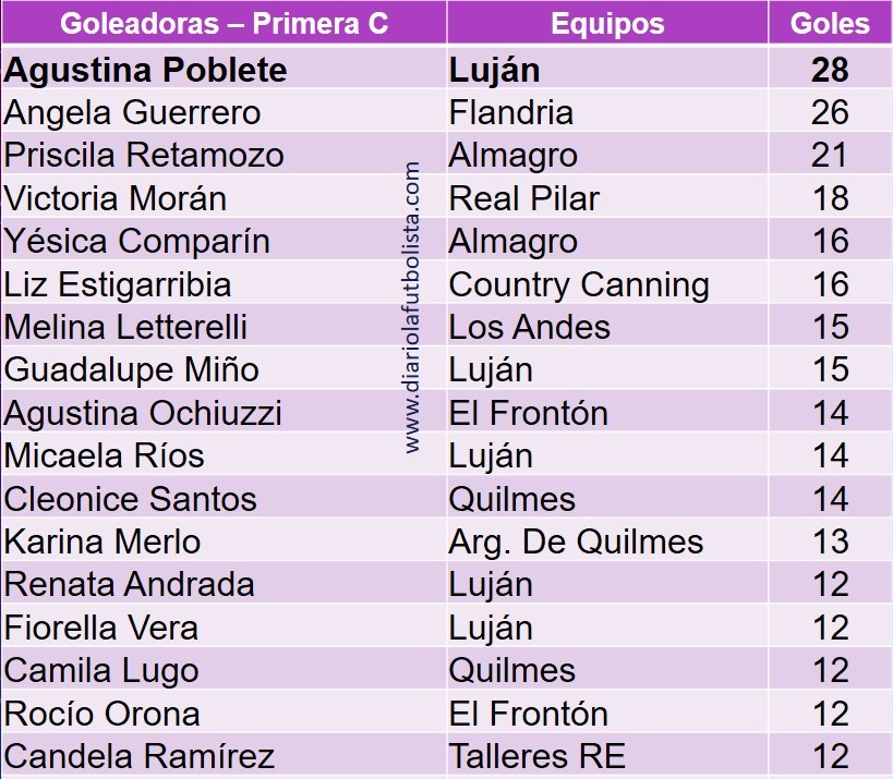 Flandria 13 vs Lugano 0. Goles: Angela Guerrero -4-, Malena Ibalo -2-, Mercedes Viotto -2-, Isolina Barrios -2-, Brisa Castillo, Ayelén Funke y e/c (F)