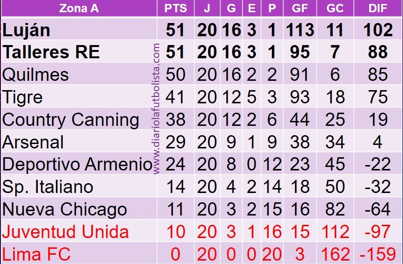 Por mejor diferencia de gol que Talleres, las lujaneras fueron primeras en su grupo y enfrentarán a Claypole por el primer ascenso. Los cruces del reducido. Los 4 desafiliados por un año: Lima FC, Lugano, Almirante Brown y Juventud Unida.