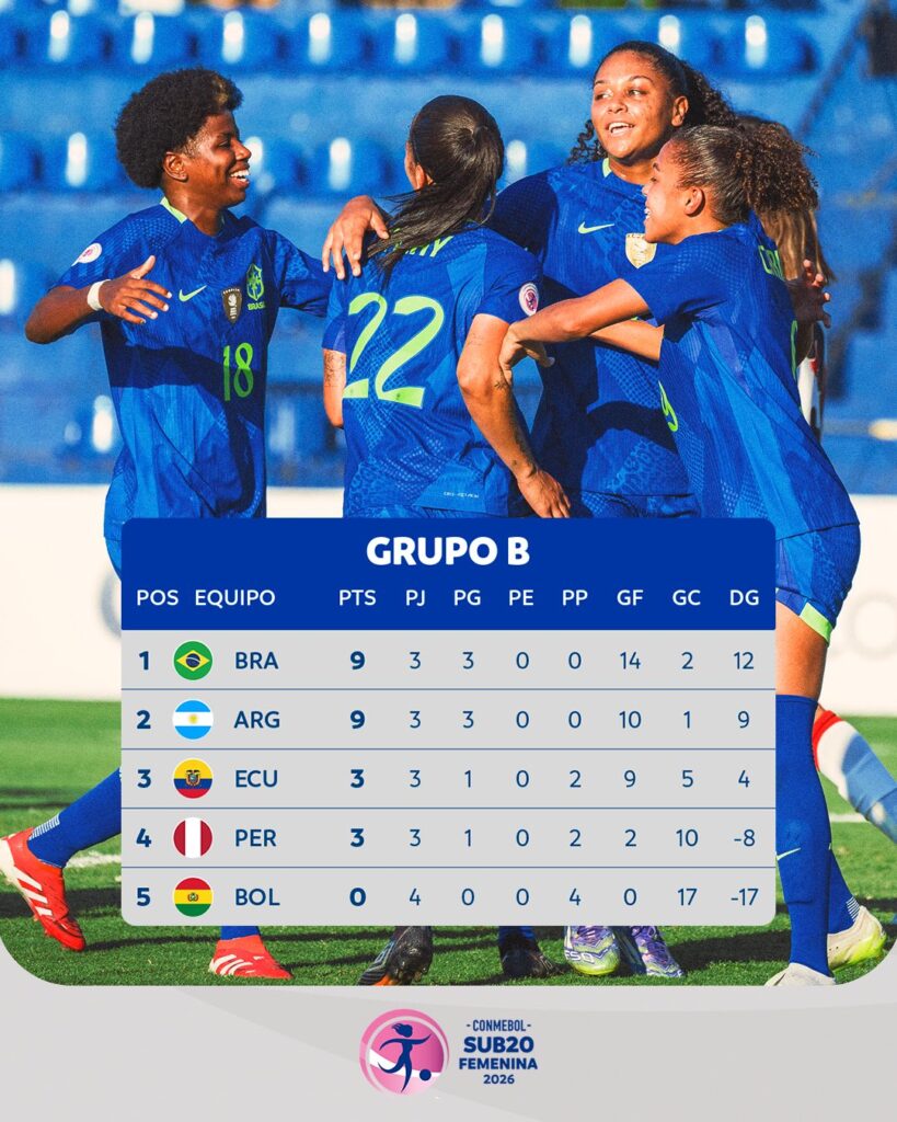 Argentina goleó 4-0 a Bolivia con goles de Kishi Nuñez -2-, Julia Vinhas y e/c. Brasil también a la Fase Final. En el Grupo A: Colombia y Venezuela (clasificaron) y Paraguay ocupan las primeras posiciones.